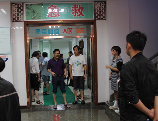 7日下午4時許,院內(nèi)積水高度已遠遠超過院內(nèi)部分建筑地面,醫(yī)院放療中心,消毒供應(yīng)室,門診大樓放射科、檢驗科、西藥房、輸液室等多處出現(xiàn)進水現(xiàn)象,市衛(wèi)生局錢宏偉局長、陸云斌副局長等相關(guān)領(lǐng)導前來我院查看內(nèi)澇情況并指導工作。