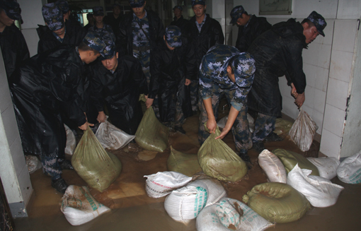 由于醫(yī)院門診大樓放射科、檢驗科、西藥房、輸液室等多處積水,為保障院內(nèi)人員安全,財產(chǎn)不受損失,駐小越五夫的海軍陸戰(zhàn)隊官兵前來我院協(xié)助抗臺防汛工作,穿著迷彩服的官兵奮力搶先,他們站在綠化帶里鏟泥沙、搬沙袋,并將沙袋堆放在門診各處出入口,院內(nèi)干部職工用畚箕、鏟子、拖把等工具將內(nèi)部積水舀到外面,官兵們與我院職工一起奮力抗戰(zhàn)內(nèi)澇,至7日晚上8時,醫(yī)院建筑內(nèi)部積水情況得到基本控制。(辦公室)