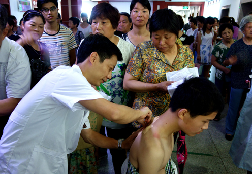 7月18日是今年三伏中頭伏的第一天,我院“冬病夏治”三伏貼正式開始,當(dāng)天,前來我院敷貼的市民絡(luò)繹不絕,整個(gè)敷貼現(xiàn)場人頭攢動。
