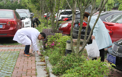 為扎實推進國家衛(wèi)生城市達標工作,發(fā)揮黨、團員在國家衛(wèi)生城市達標工作中的示范帶頭作用,5月9日,我院組織全院50余名黨員、團員開展院內(nèi)環(huán)境衛(wèi)生大清理活動。黨、團員們紛紛帶上白手套,提著垃圾袋,認真仔細巡查,對綠化帶、花壇、樹叢等衛(wèi)生死角處的垃圾、雜物、煙頭進行了一次拉網(wǎng)式清理,院內(nèi)環(huán)境煥然一新。