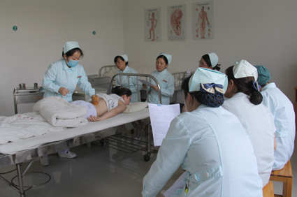 技能比武內(nèi)容分為中醫(yī)和西醫(yī)兩塊,分別為中醫(yī)操作拔火罐和西醫(yī)操作留置針輸液,由護(hù)理部主任和各科室護(hù)士長(zhǎng)擔(dān)任評(píng)委。比武分成15個(gè)護(hù)理單元,30位參賽選手按照抽簽順序先后進(jìn)行了操作實(shí)戰(zhàn)演示。在整個(gè)比武過(guò)程中,考官們嚴(yán)肅認(rèn)真,選手們衣帽整齊、精神飽滿(mǎn),她們用和藹的表情、體貼的言語(yǔ)和周到利落、動(dòng)作嫻熟的技術(shù)展示了各自的水平。