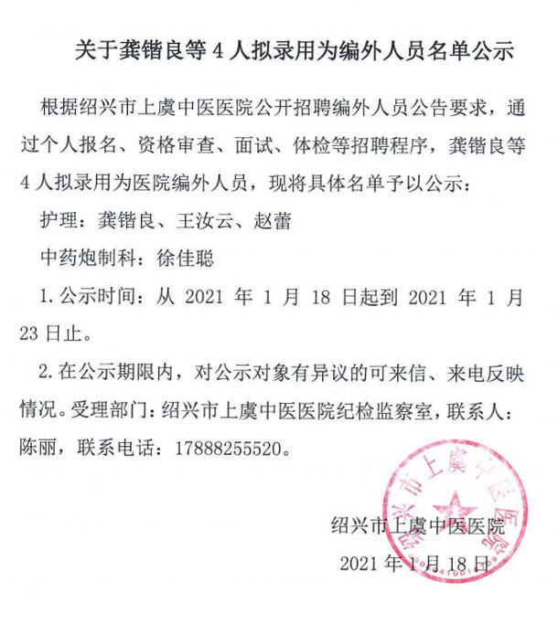關(guān)于龔鍇良等4人擬錄用為編外人員名單公示