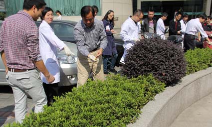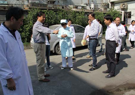 院長帶隊檢查垃圾房衛(wèi)生場景