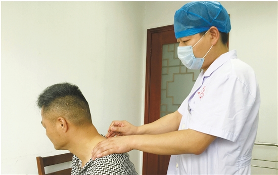 近日,上虞中醫(yī)醫(yī)院醫(yī)生正在為病人實施傳統(tǒng)中醫(yī)特色療法——刺血療法。