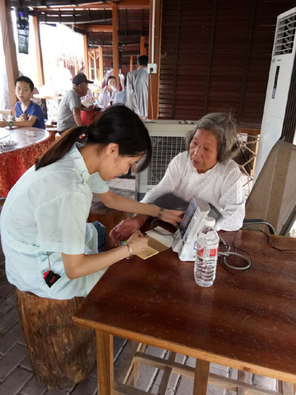 此次義診主要給當(dāng)?shù)乩习傩仗峁┲嗅t(yī)辯證論治、內(nèi)外科疾病診治的咨詢、體檢結(jié)果咨詢;免費(fèi)測(cè)血糖;免費(fèi)發(fā)放驅(qū)蚊包及部分常用藥物;宣教冬病夏治、敷貼相關(guān)知識(shí);宣教中醫(yī)藥知識(shí)及西藥使用、管理知識(shí),受到當(dāng)?shù)乩习傩盏囊恢潞迷u(píng)。