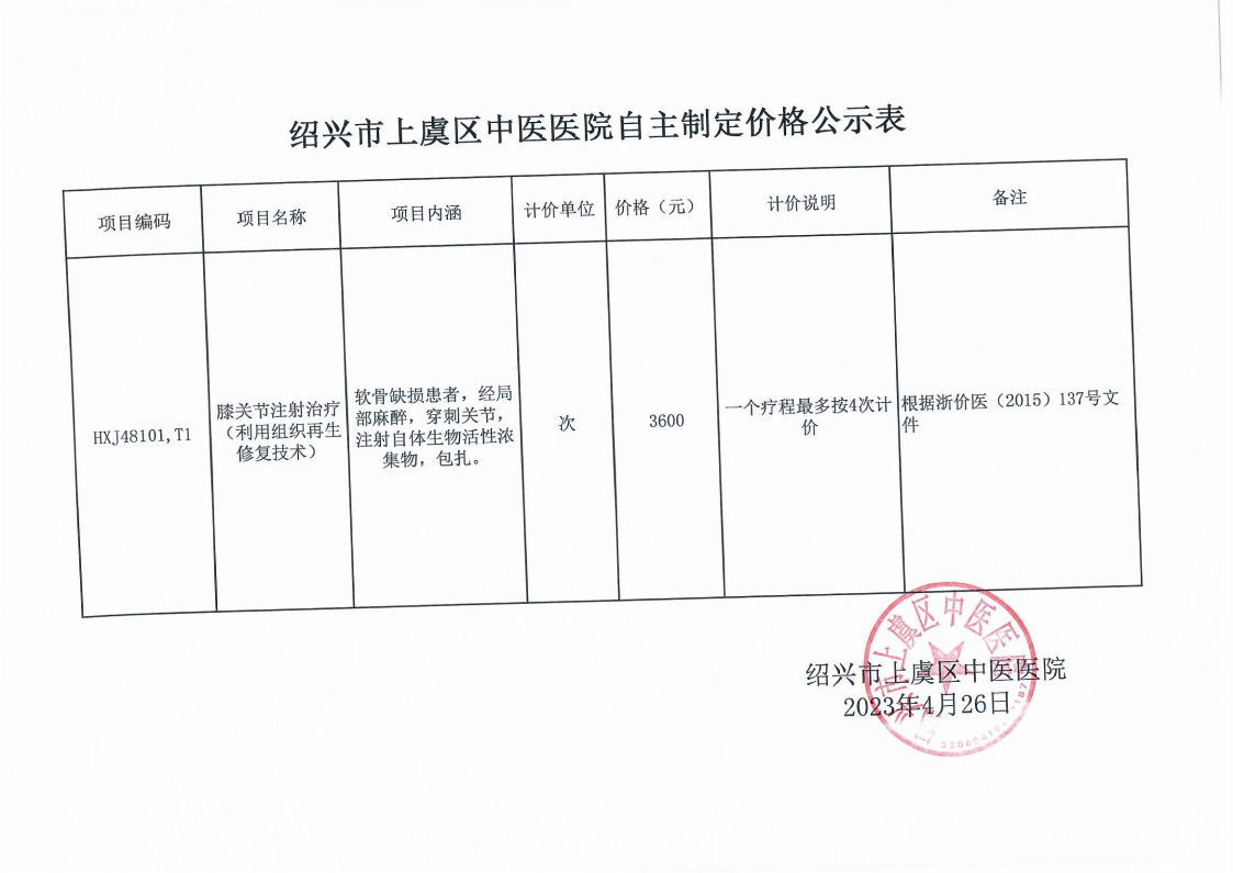 紹興市上虞區(qū)中醫(yī)醫(yī)院自主制定價格公示表